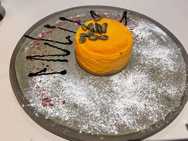 デザートは、Harunaスペシャルから。パンプキンチーズケーキで、ほどよい甘さで美味でした😊