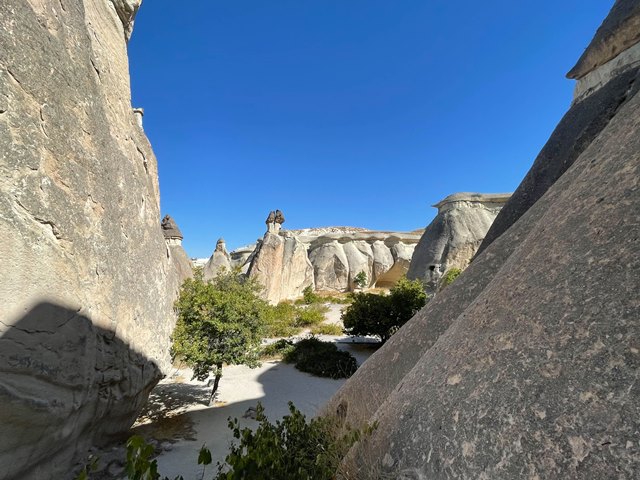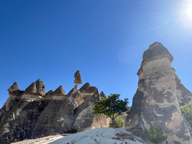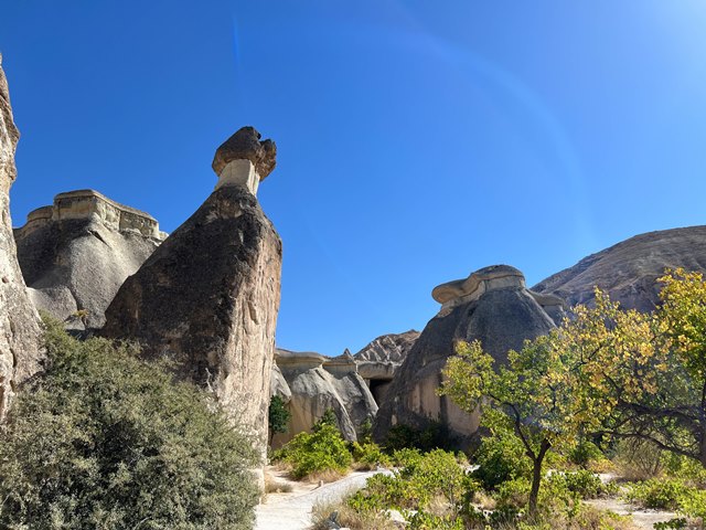 修道士が隠れ住んだといわれるきのこ岩は、下に居住空間があり、上の部分で瞑想や礼拝をおこなっていたそうです。