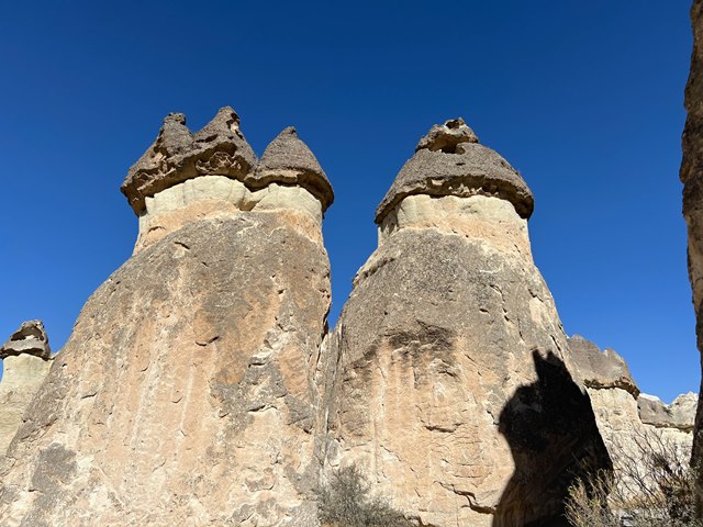 カッパドキアの地層は、上の部分が硬い岩、下の部分が凝灰岩で出来ているのだそうです。