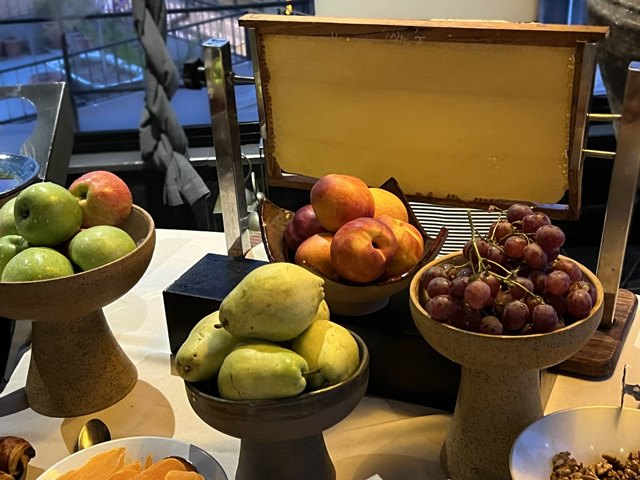 大きなリンゴや桃などがあって、みんなどうやって食べるんだろう?(ナイフがないので)と、ちらっと観察してみたらなんと!ポッケに入れて持って帰っている人がちらほらと。びっくりしました。