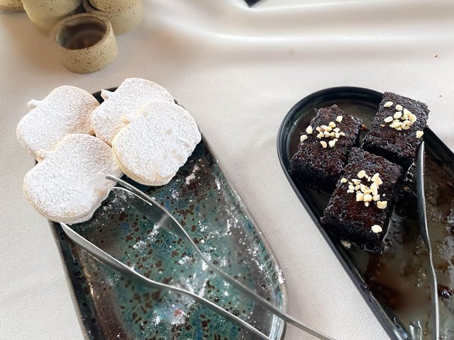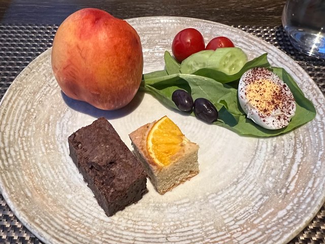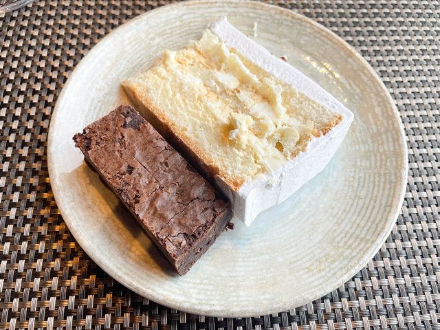 左下のブラウニーが、外がカリッさくっ、中がじゅわっとしていて美味しかった。