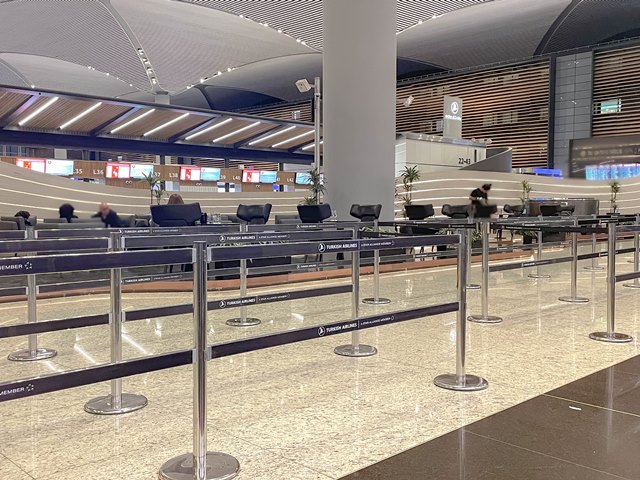 イスタンブール空港では、チェックインの際にビジネスクラス以上の専用チェックインカウンターがあります。チェックイン→保安検査と優先レーンをそのまま移動できるので、とても便利でした。