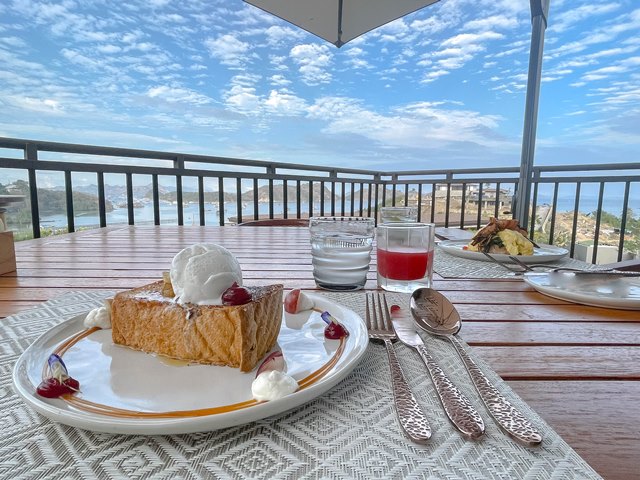 朝のお天気が曇りの時が多かったので、最終日にやっとテラスにて、フローレス海を見ながらの朝食ができました😊