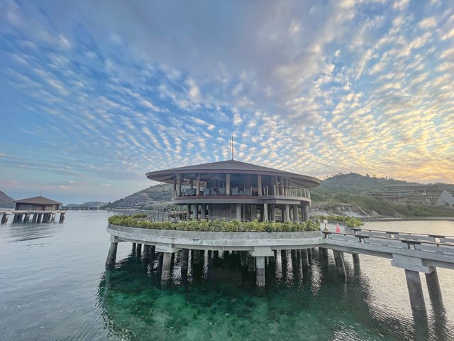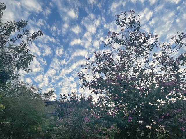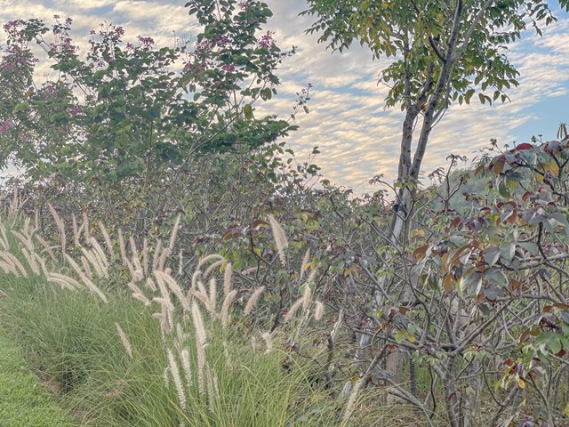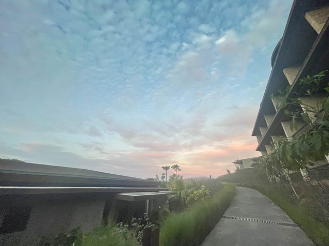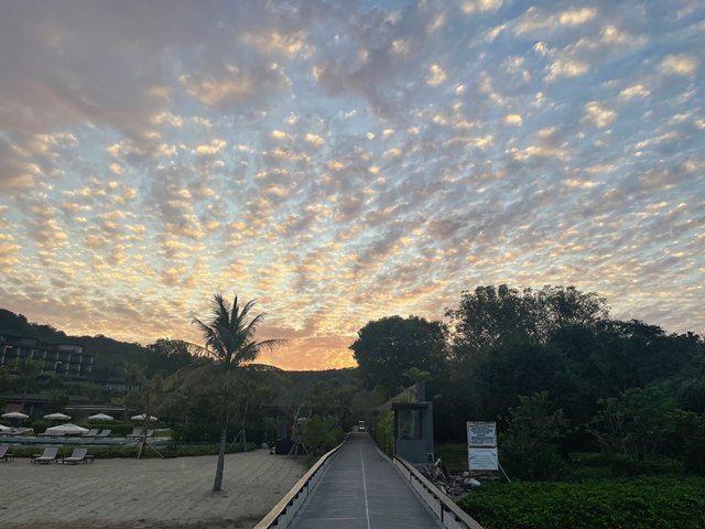 空に、とても綺麗なうろこ雲が出ていたので、朝食前にリゾート内をお散歩してみることにしました。