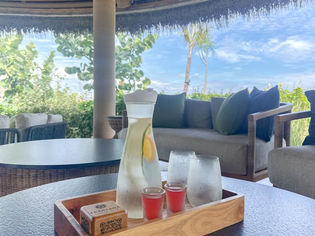 さて、前日10時半頃にはこういったサービス(↑)はなかったのですが、この日は午後だったからか、お水やらウェルカムドリンクをプールバーの方が持ってきてくださいました。