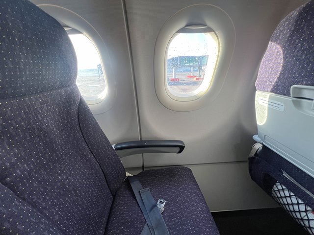 今回訪れる先は小さな空港だからか、飛んでいた機材はA321・ビジネスクラスがない機材です。