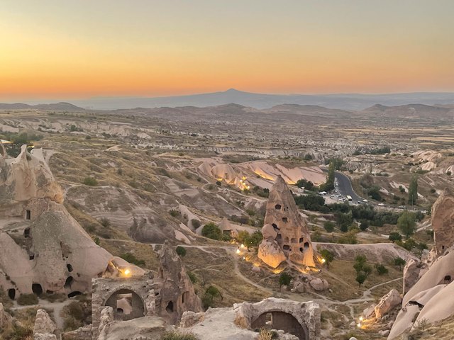 ウチヒサール城に昇ってしまうと、夕陽に照らされるお城自体が見れなくなってしまうので、お城下にある場所から眺めることにしました😊Senzaから歩いて5分ほどのところです。